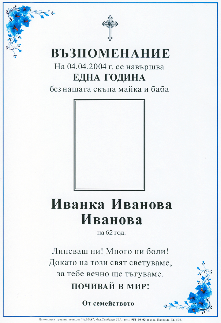 Предлагаме и ламиниране, което допълнително запазва некролога за по-дълго време.